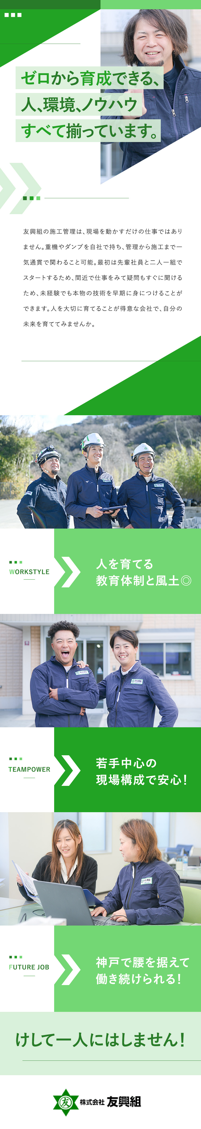 神戸エリア中心/安定の土木施工管理/未経験歓迎/賞与年2回