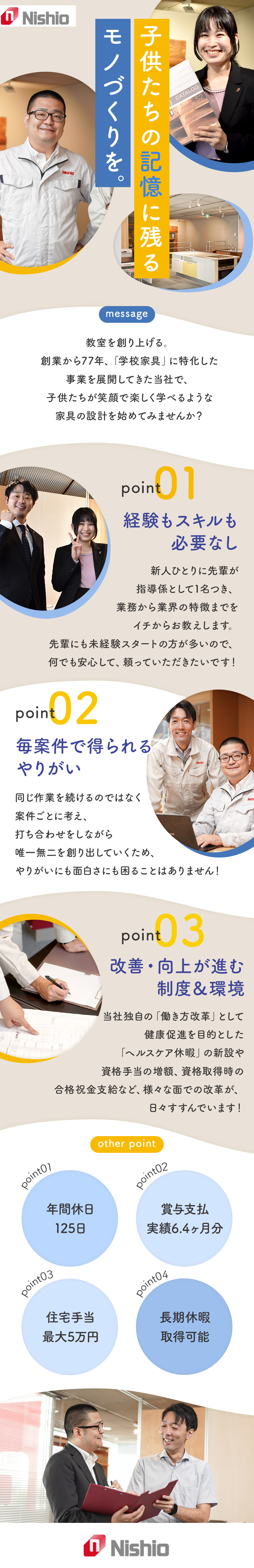 学校インテリアの設計・進行管理/年休125日/未経験OK