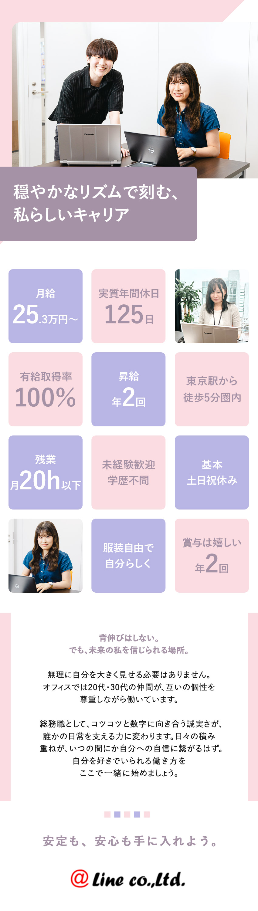 総務スタッフ/未経験歓迎/残業少なめ/有休取得率100%!