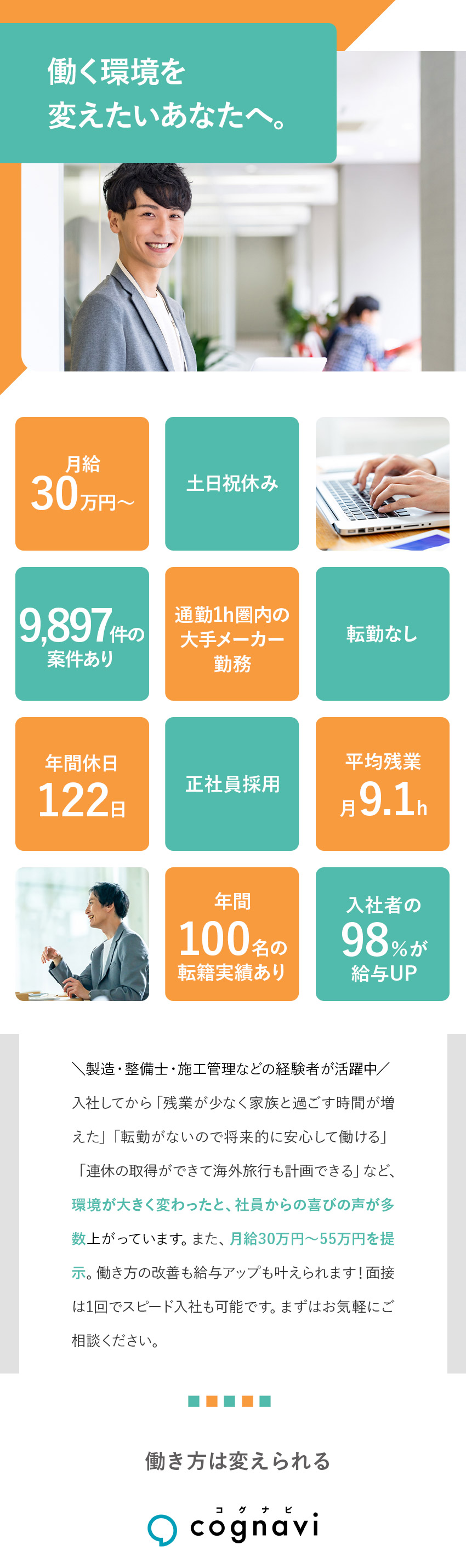 製造・整備士・施工管理の経験が活かせる案件が多数