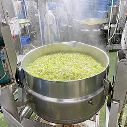 工場内で大量調理を行うポジションです。決められた手順に沿って作業を進めていきます。