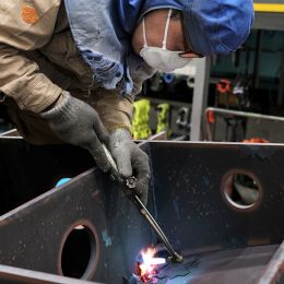 鉄・アルミ・ステンレス・ニッケル合金など幅広い素材を扱い、アーク溶接やTIG溶接で部材を接合します。