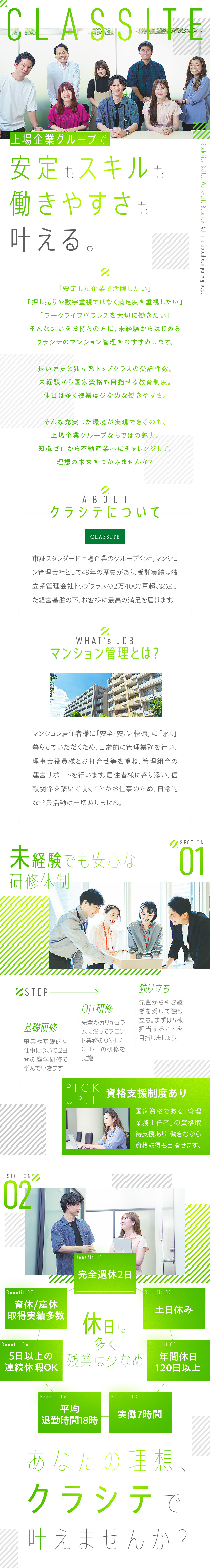 マンション管理フロント職/17時定時/賞与年2回/東証上場G