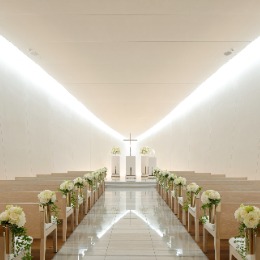 当社実績例③。静謐ながらも、明るくやわらかな印象のチャペル。