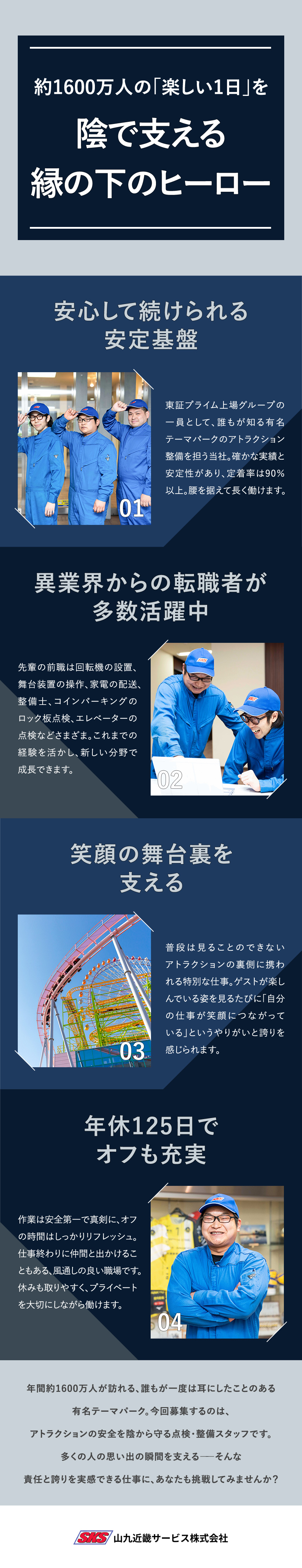 テーマパークの点検・整備/賞与年3回/年休125日/即日内定
