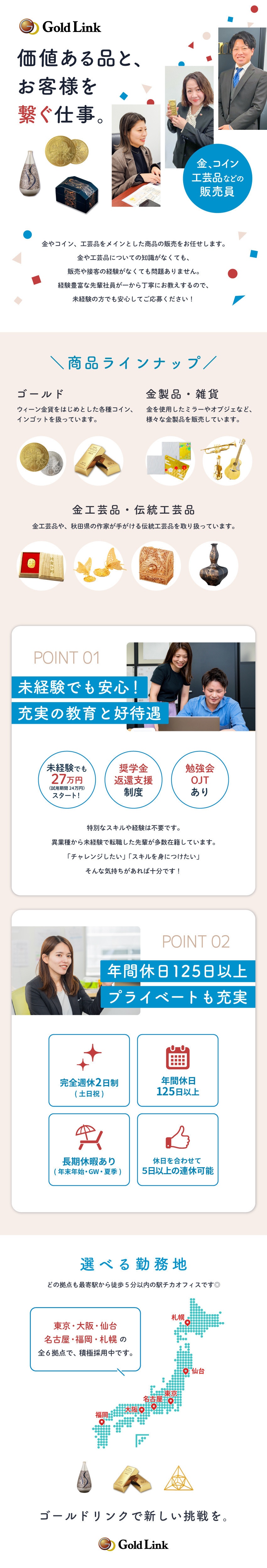 ウィーン金貨や金の工芸品などの販売/土日祝休み/未経験者歓迎