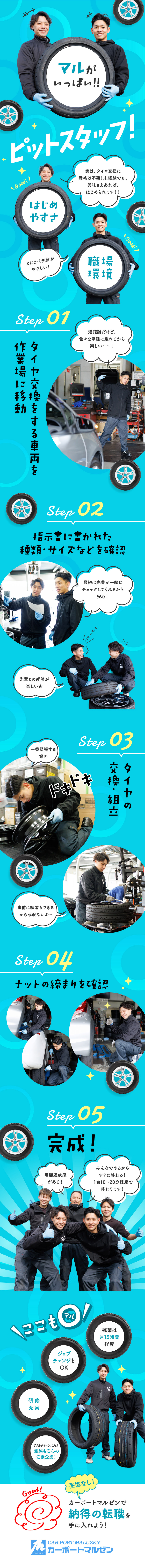 【西宮】タイヤの交換・組み立てスタッフ◇未経験から手に職がつく◇年休120日/残業ほぼ無/髪型自由