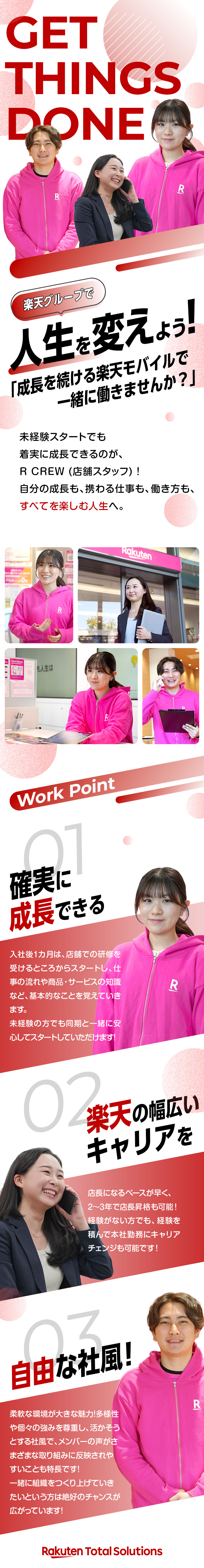そこで今回、楽天モバイルショップで活躍いただく正社員を募集することにしました!充実した研修制度で未経験でも安心してスタートできます!自分しか描けないキャリアパスを、楽天グループで実現してください。