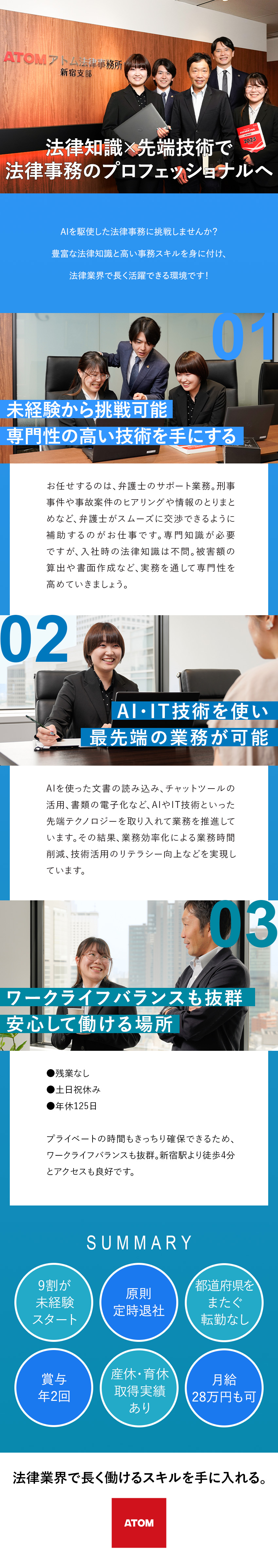 未経験歓迎の法律事務/月給28万以上/年休125日/残業少