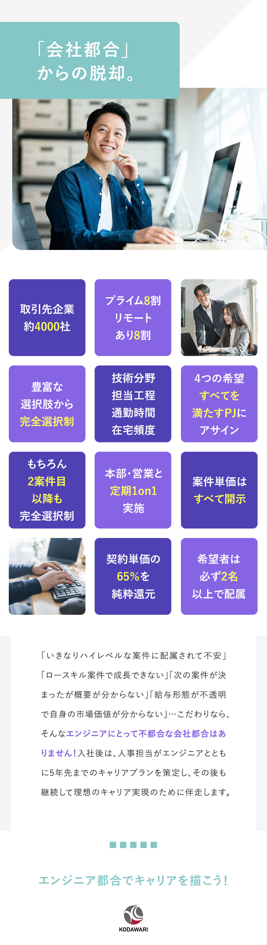 ITエンジニア/単価フル公開/還元率純粋65%/案件選択制