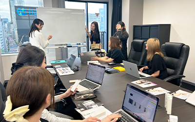 美容やサプリ、コスメ好きな人が多く、自社の商品以外にも自分達のオススメ美容商品を話し合い、その話から新商品のヒントやプロモーションにも活かされています。