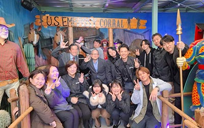 海外スタッフや関係者を迎える場として、日本文化をテーマにした空間演出を実施。和傘タワーや鳥居装飾、桜演出、オリジナル座布団の制作などを通じ、“日本らしさ”を感じられる特別な空間づくりを行いました。