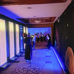 グループ会社周年パーティをLEDビジョンや装飾品を組み合わせ100周年に向けて未来・宇宙テーマで企画