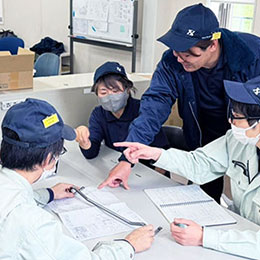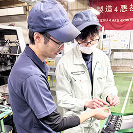 現場では、『自分たちで課題を見つけ、改善する』風土が根付いており、社員一人ひとりが品質向上に挑戦しています。改善の成果はしっかり評価され、日々の成長がモチベーションにつながる環境です。量産品の品質管理だけでなく、改良や新製品の開発にも携われるのが、この仕事の醍醐味。未経験でも先輩が丁寧に教えるので安心してください。