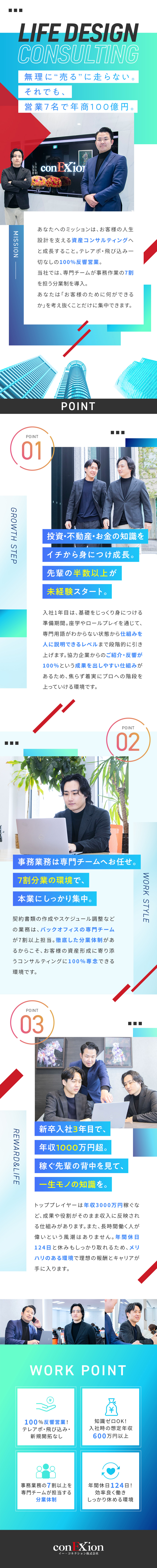 少数精鋭の7名で年商100億円を支える組織だからこそ、一人ひとりの裁量と存在感は抜群です。自分の介在価値が会社の成長、そしてお客様の未来にダイレクトに反映される手応えは、他では味わえない大きな醍醐味となるはずです。