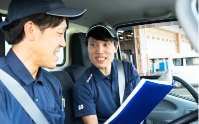 最初のうちは先輩が同乗します!スムーズな配送のコツをつかめば、どんどん成長できます!