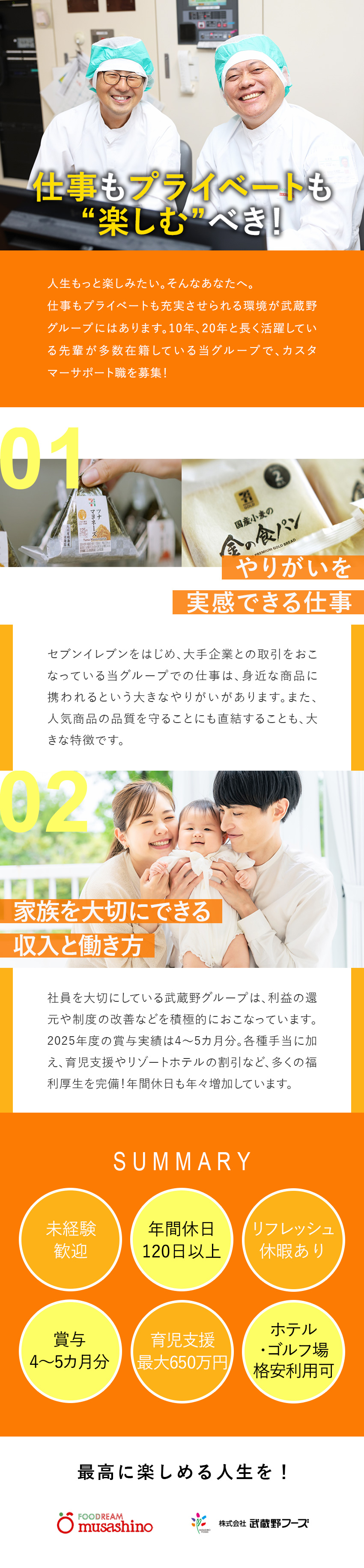 おにぎりやパン等の品質管理/年休実質122日/賞与4~5カ月