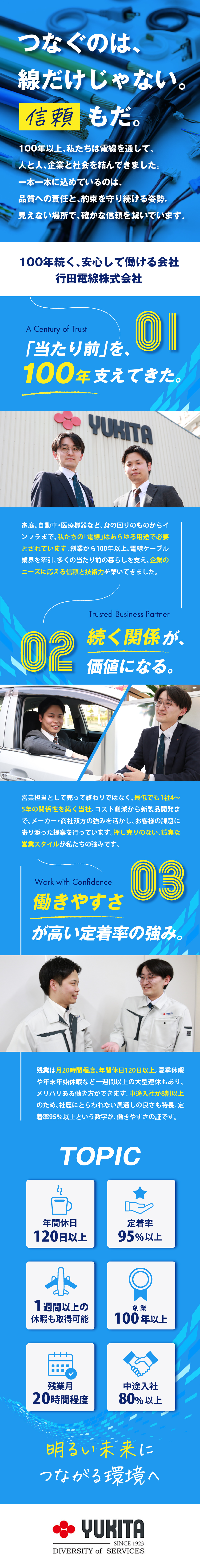 電線を扱うルート営業/ノルマなし/年休121日/賞与2回