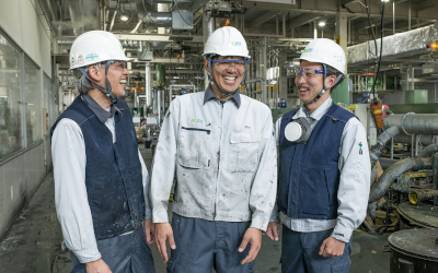 広い工場を歩き回ったり、ドラム缶など重量物の取り扱うなど、一定の体力が必要となるお仕事です。重量物の取り扱いにはフォークリフトなどを使用しますが、瞬間的に20kgのモノを持ち上げる場面も発生します。また製造は単なる機械操作だけでなく、自分の目や感覚を養うことも求められます。とはいえ、基本的な進め方はマニュアルが整っている他、不明点は遠慮なく先輩に相談しながら少しずつ慣れてほしいとのことでした。