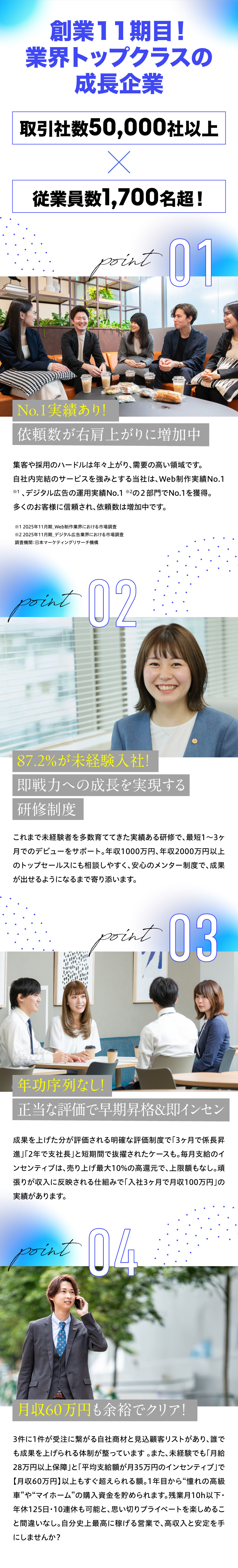 【高受注率×高需要×高単価の自社商材】集客・採用に特化したサービス等の企画営業◆初月から毎月インセン