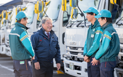 東京都トラック協会・中央支部の支部長を務めているほか、東京都中央卸売市場の輸送協力会や、東京商工会議所の運輸支局などでも活動しており、業界内に幅広いネットワークを持っています。