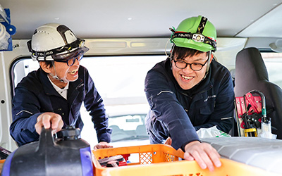 現場は、同社以外にも建築、水道、電気などの専門業者や職人さんが関わっています。スムーズに作業が行えるよう段取りを行う必要があるため、あらゆる方々との日々のコミュニケーションが大切です。職人さんとの会話のコツなど、経験豊富な先輩からアドバイスをもらいながら少しずつ慣れていきましょう。ぜひ積極的に先輩へ質問して、疑問や不安を解消していってください。