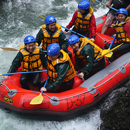 社員旅行では川ラフティングに挑戦!遊ぶときは本気で全力で楽しむ。それがJpiジャパン流です