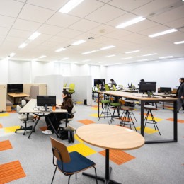 移転したばかりの神戸本社はフリーアドレス。広々として開放的な空間です!