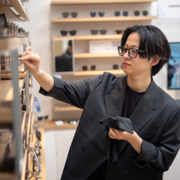 「お客様の使用シーンや目的をお伺いし、その方の雰囲気やファッションに合ったメガネをご提案します。商品の性質上、『似合う』だけでなく、メガネとしての機能性も重要です。豊富な商品ラインナップから、機能性とファッション性の両方にご満足いただける、最適な一本を見つけることが私たちの腕の見せ所です。また、『このメガネをかけることで、よく見えるようになった。自分の印象がこんなふうに変わった』といったお客様の変化を一緒に実感できるのも、この仕事の大きなやりがいです。」