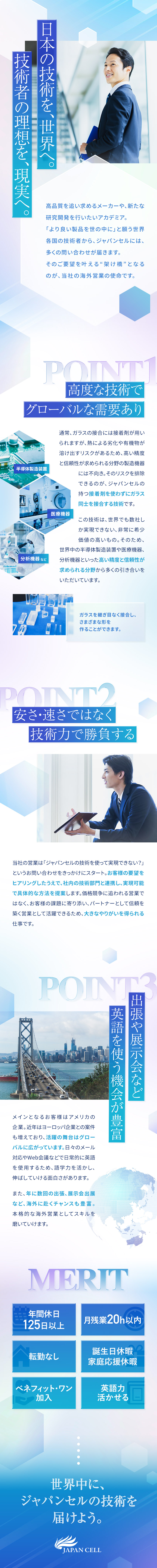 海外営業(精密ガラス製品)/年休125日以上/残業20h以内