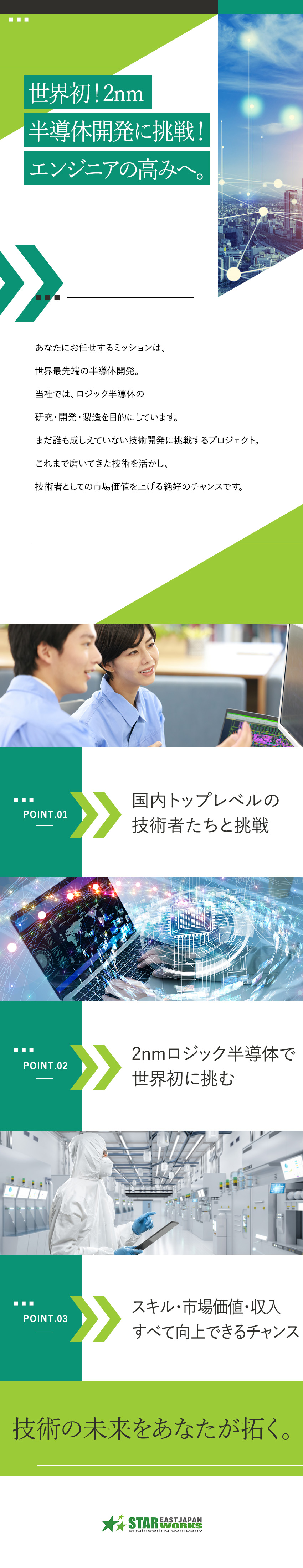 半導体分野エンジニア/北海道・関東/最大10万円家賃補助