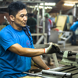 契約後は仕入れ業者から機器・設備の製造に必要な部品の調達のための打ち合わせを行い、工場での製造を指示。完成した機械をお客様先へ輸出します。