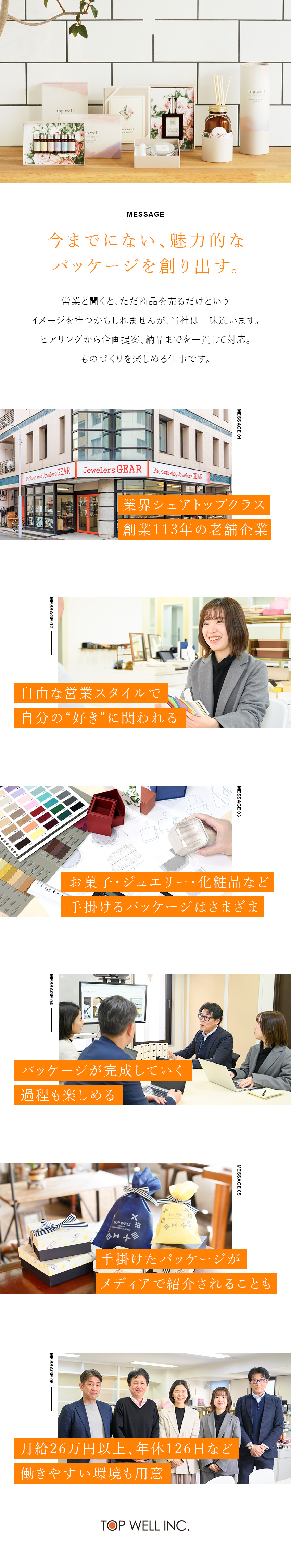 パッケージの企画営業/年休126日/土日祝休/月給26万円~