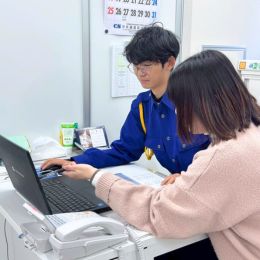 お仕事の進め方は、写真のように先輩の小林さんが隣に座ってイチから丁寧に教えてくれるとのことです!