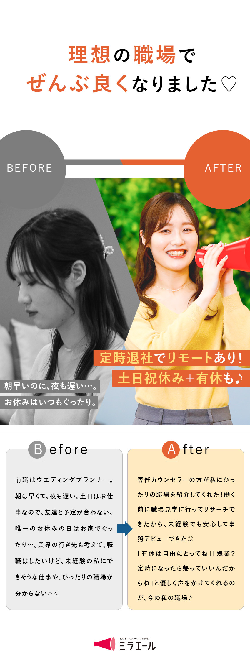 適性に合わせて選べる事務/リモートあり/土日祝休み/残業なし
