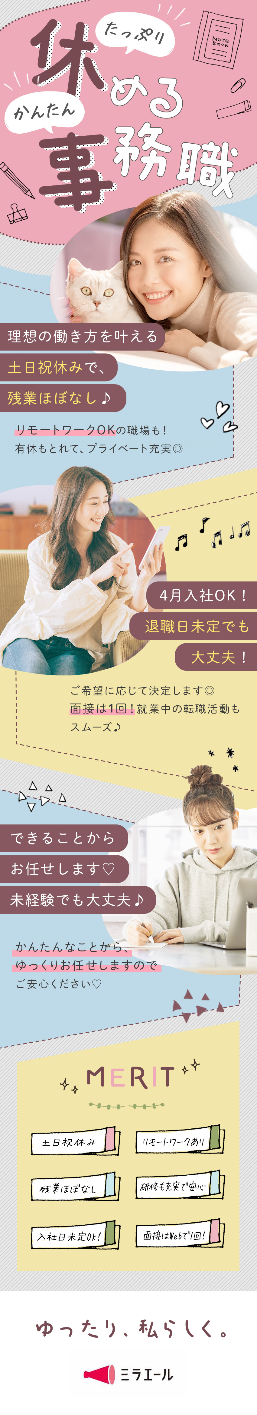 NEW締切間近無理せず心穏やかに働ける事務/土日休み/在宅有/原則定時退社