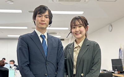 先輩と実際の会話を想定した練習をしたり、実際に架電を始めます。