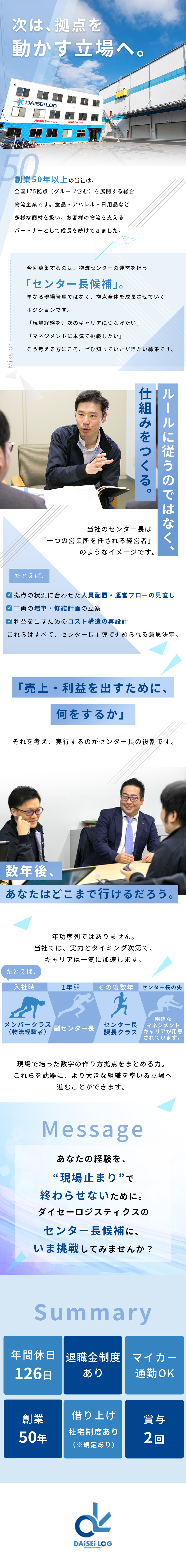 物流センター運営(管理職候補)/年休126日/月給35万円~