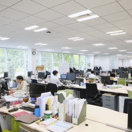 仕事中は集中できる落ち着いた雰囲気でありながら、困ったときは上司や同僚にいつでも相談しやすく、ワンフロアなので他部署とも連携がとりやすい環境です。