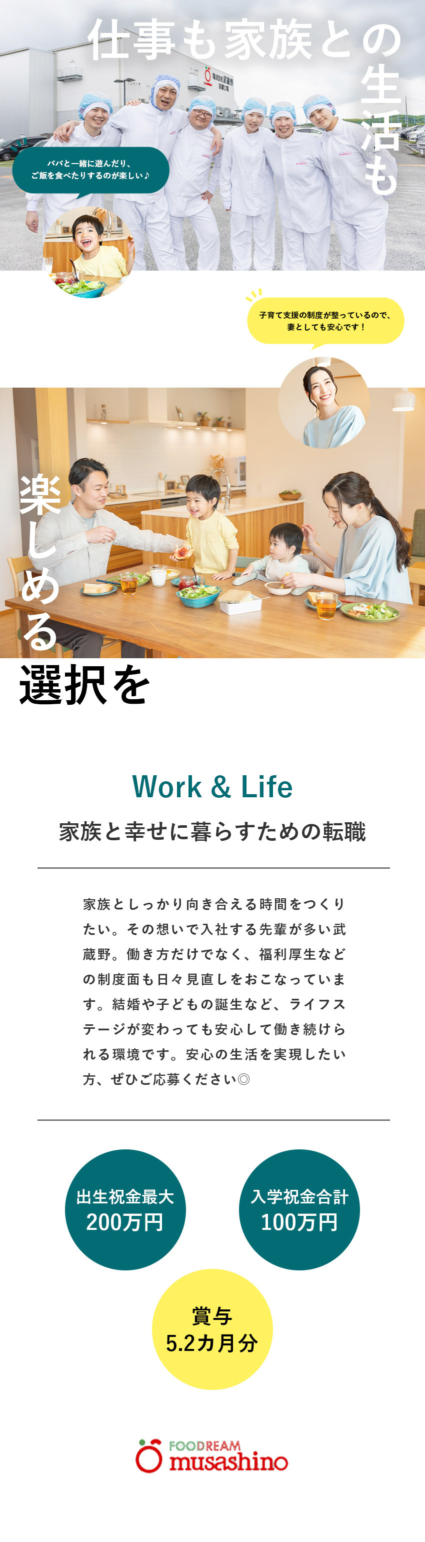 将来も安心の製造管理/子育て支援充実/賞与5.2カ月