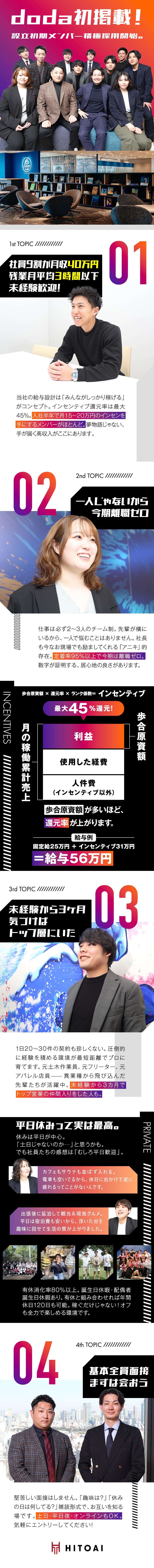 しかし、最初は冷たい印象の方がむしろ、最後には深く感謝してくださることも多くあります。当社はまさにこれからの成長組織!一緒に会社を育て創り上げていく初期メンバーを強く求めています!