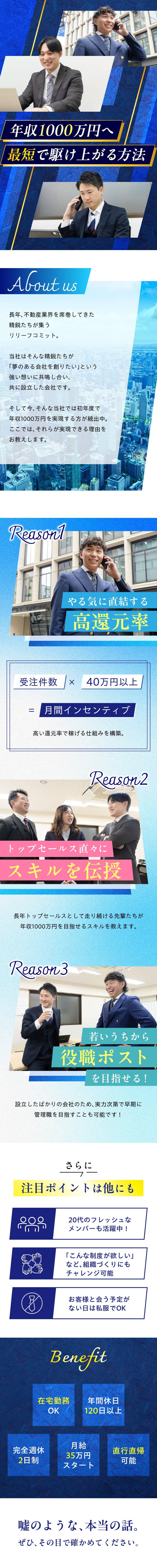 インセンティブは1件成約ごとに40万円以上!20代・未経験から年収1000万円が目指せる環境です!