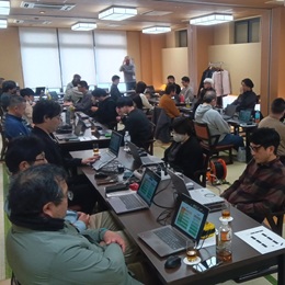 お風呂好きの全社員が集まる全体会議の様子。「どこを目指し、どのような行動をするか」を再確認しました。
