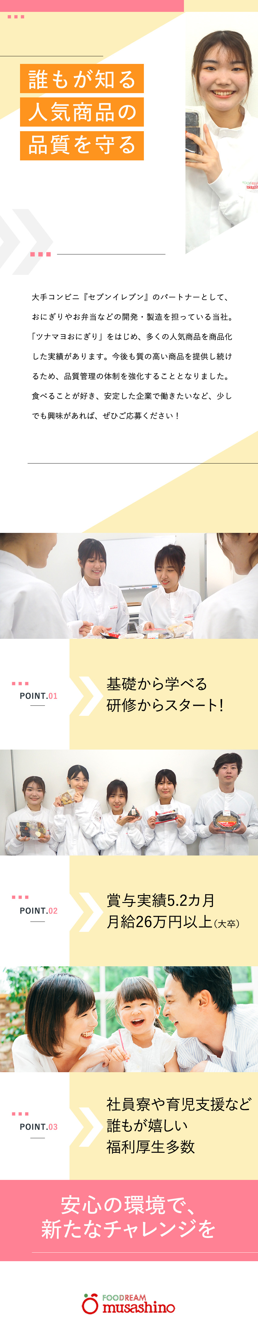 【やりがい】大手コンビニで販売される商品を手掛ける/【未経験OK】研修充実!食品業界に欠かせないスキル/【手当充実】家族手当/子ども祝金最大1人300万円/株式会社武蔵野(神戸工場)