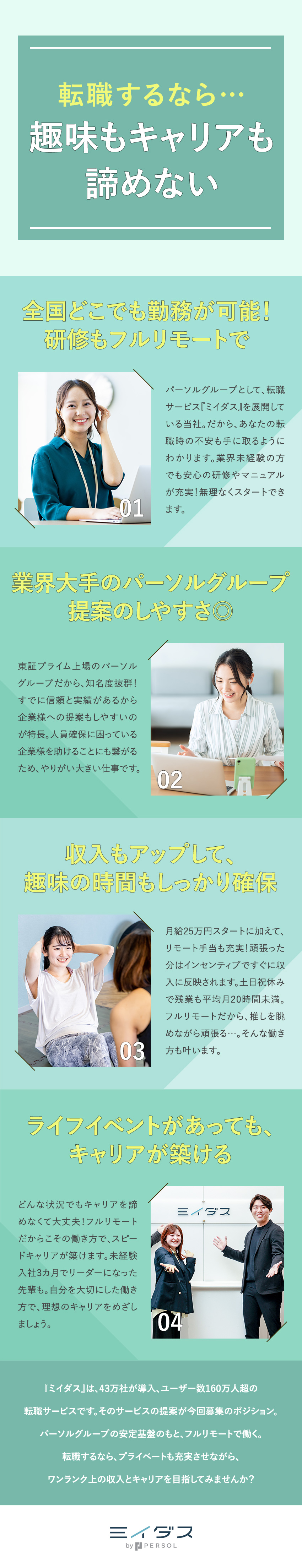 そんな人気の転職サービス『ミイダス』をご提案いただく法人営業のポジションです!