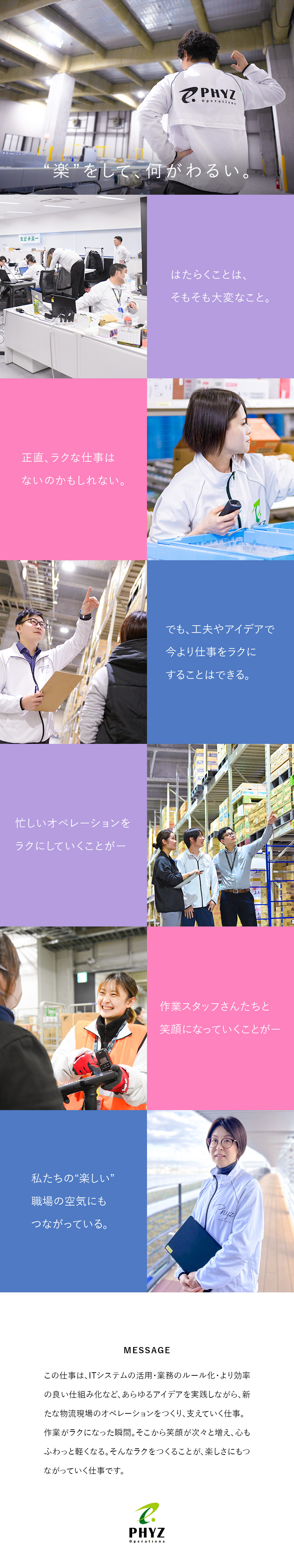 『入荷』『在庫管理』『出荷』の各工程の作業が、安全かつ確実に進められるよう物流オペレーションの管理・改善などの業務を担当いただきます!