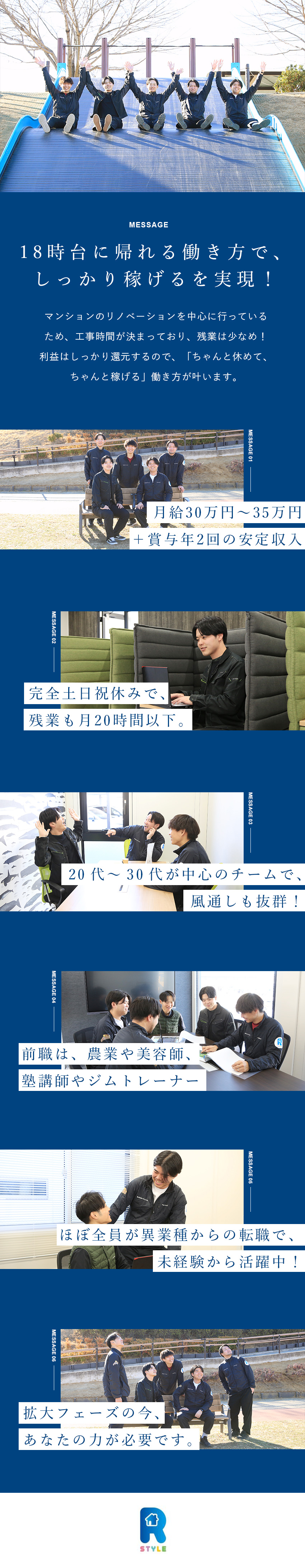 既存住宅の価値を維持・向上させるリフォーム・リノベーションのニーズは年々高まっており、2016年の設立以来、右肩上がりに業績を伸ばす同社。売上は3年目で2億円、6年目には10億円、2025年度には20億円を突破!今後もさらなる増収を見込むなど、安定性と将来性を兼ね備え、今もなお飛躍的な成長を続けています。