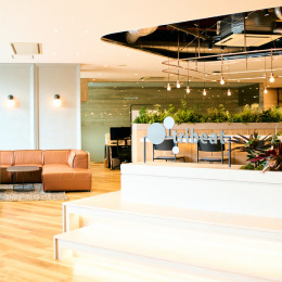 天井が高く開放的で、デザイン性に優れているだけでなく、打ち合わせスペースやバーカウンターなどに自然に社員が集まるような作りです。駅チカオフィスなので通勤にも便利です!
