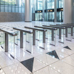 オフィス入口のゲートなどは、導入されている多くがクマヒラ製品。