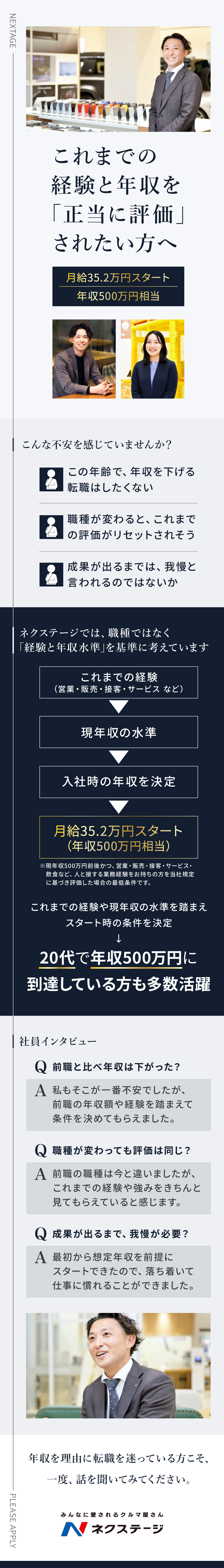 年収面の不安は誰もが抱えると思います。これまでの経験を無駄にしないためにも、スタートから正当に評価してくれる会社選びが大切です。ネクステージで不安なくスタートできて良かったと思っています。